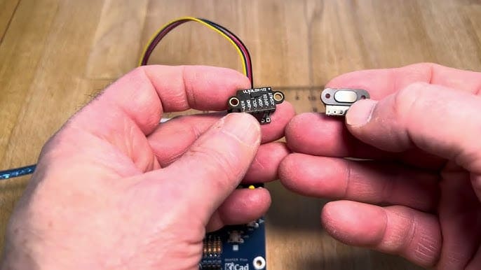 Le câblage a ensuite été réalisé entre la carte Arduino, l’écran d’affichage et le télémètre laser. Le capteur étant basé sur une communication I2C, nous avons connecté les lignes SDA et SCL aux broches correspondantes de la carte, ainsi que l’alimentation et la masse. Une plaque d’essai a été utilisée pour assurer un montage propre et modulable.